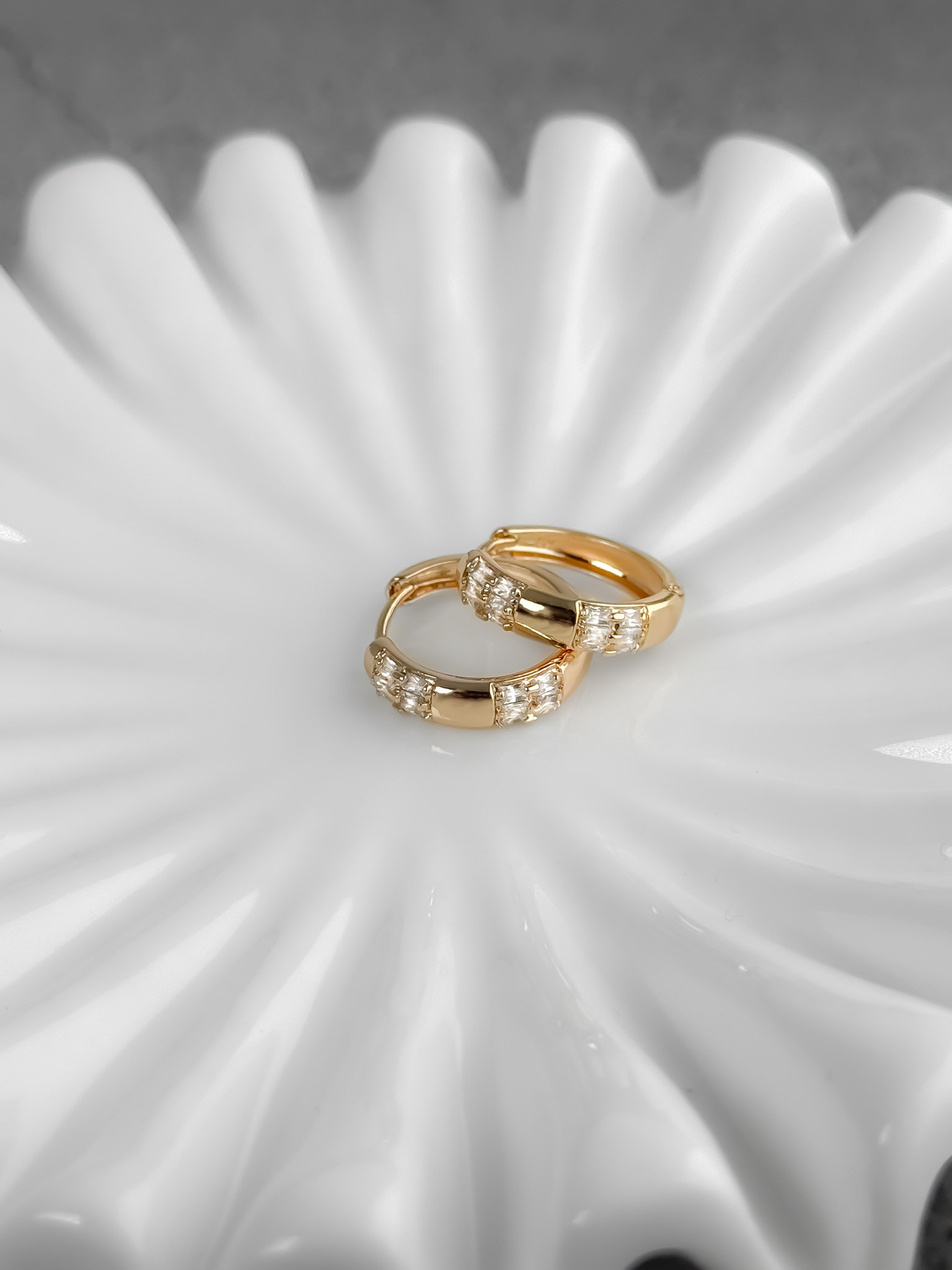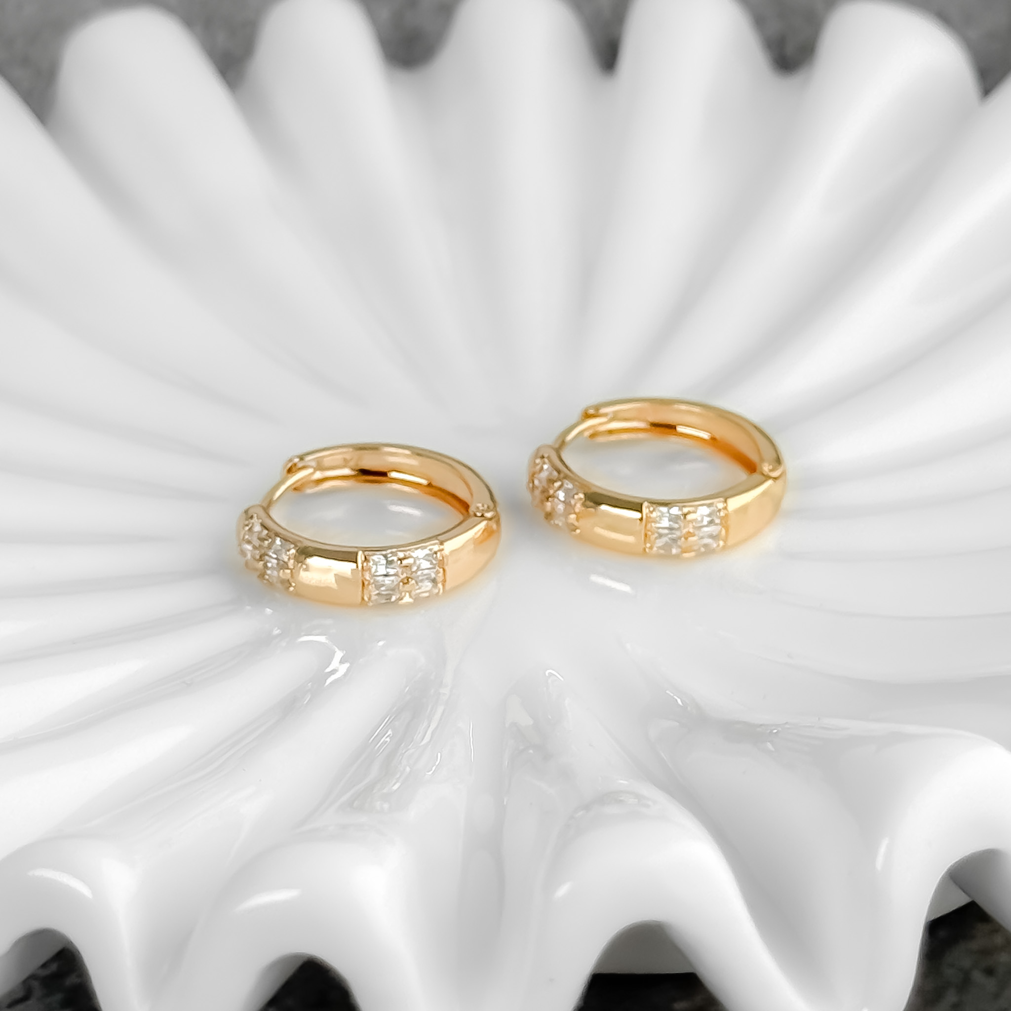 Złote kółeczka z subtelnym zdobieniem z cyrkonii – idealne na co dzień, do pracy i na wieczór. Delikatnie rozświetlają twarz, dodając elegancji bez przesady.
