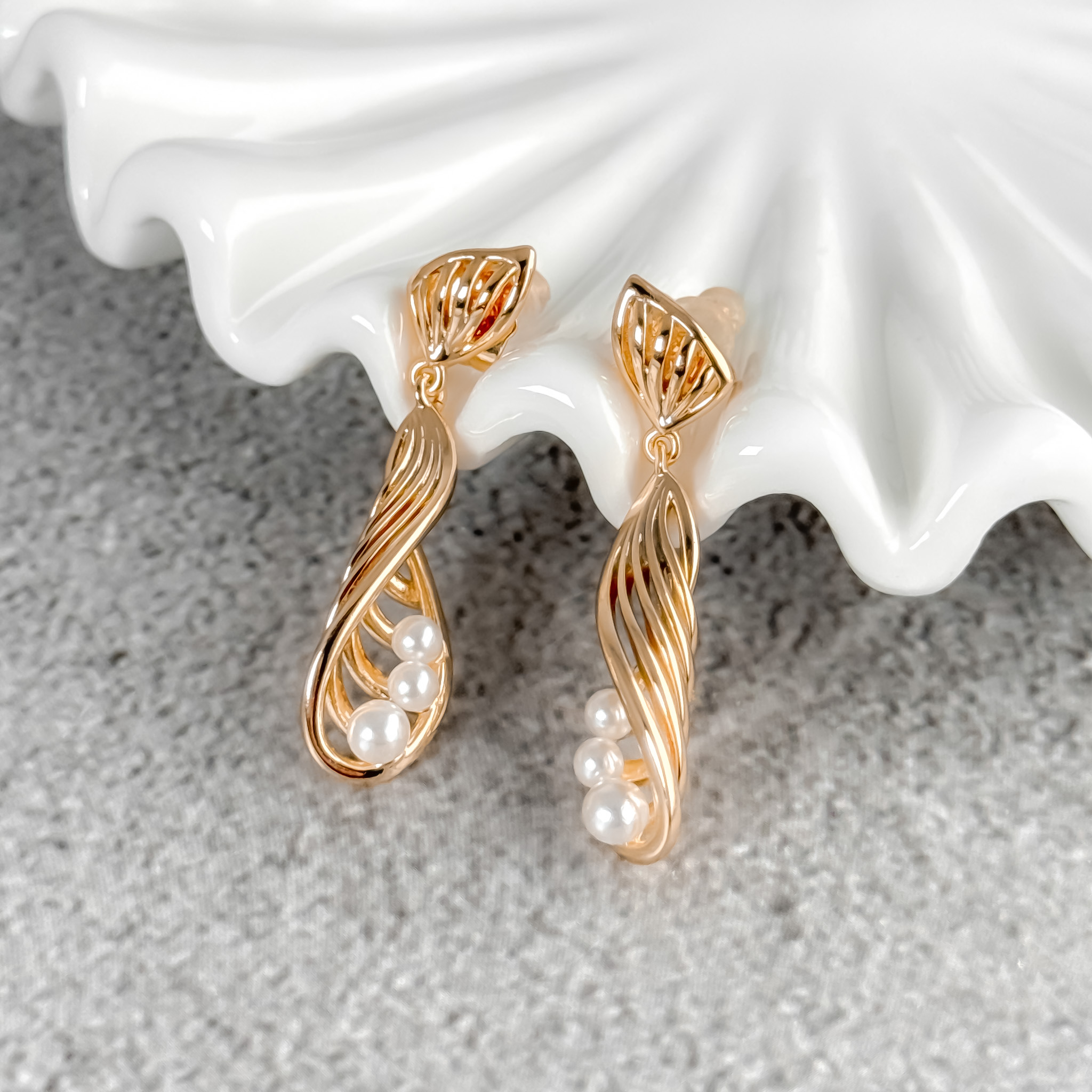 🌊 Perłowy nurt jakby złoty prąd oplatał drobne perły i unosił je w tańcu. Lekka, a zarazem efektowna forma, pięknie układają się przy twarzy i przyciągają światło z każdej strony. Idealne do satyny, falban i każdej stylówki z nutką romantyzmu.