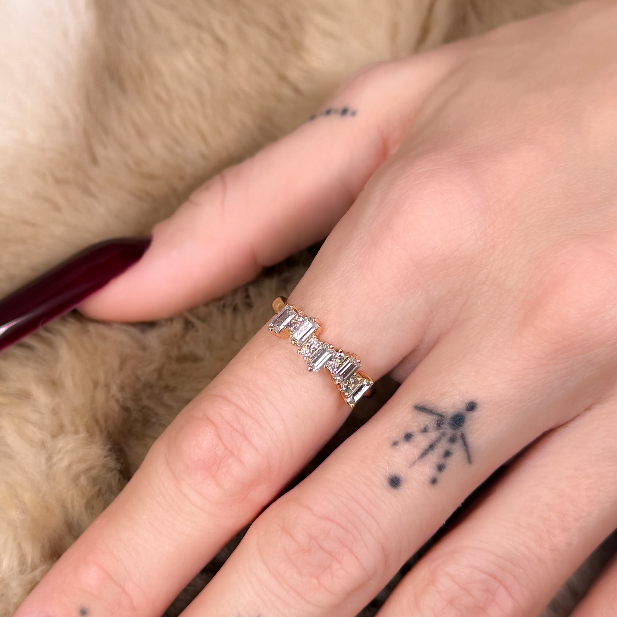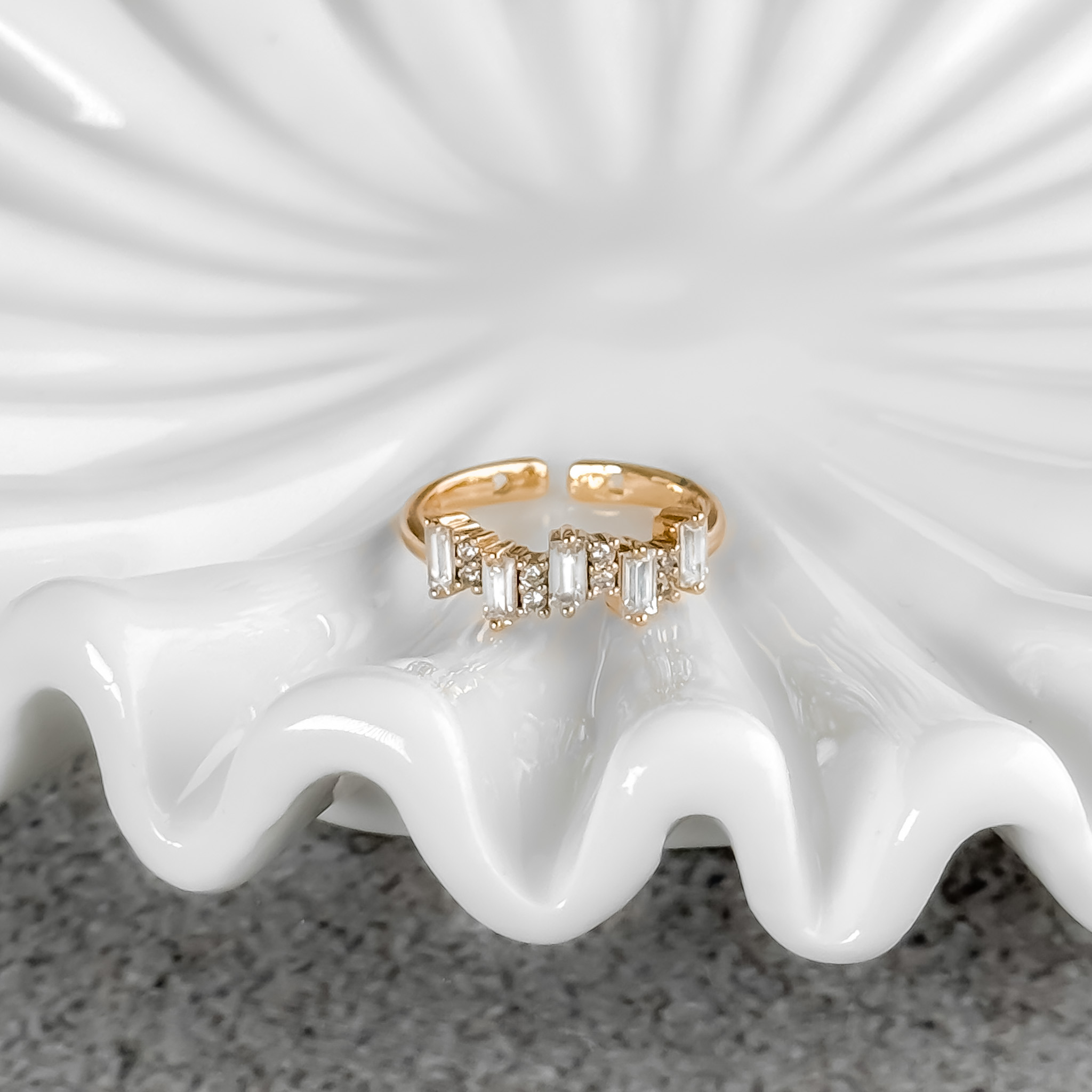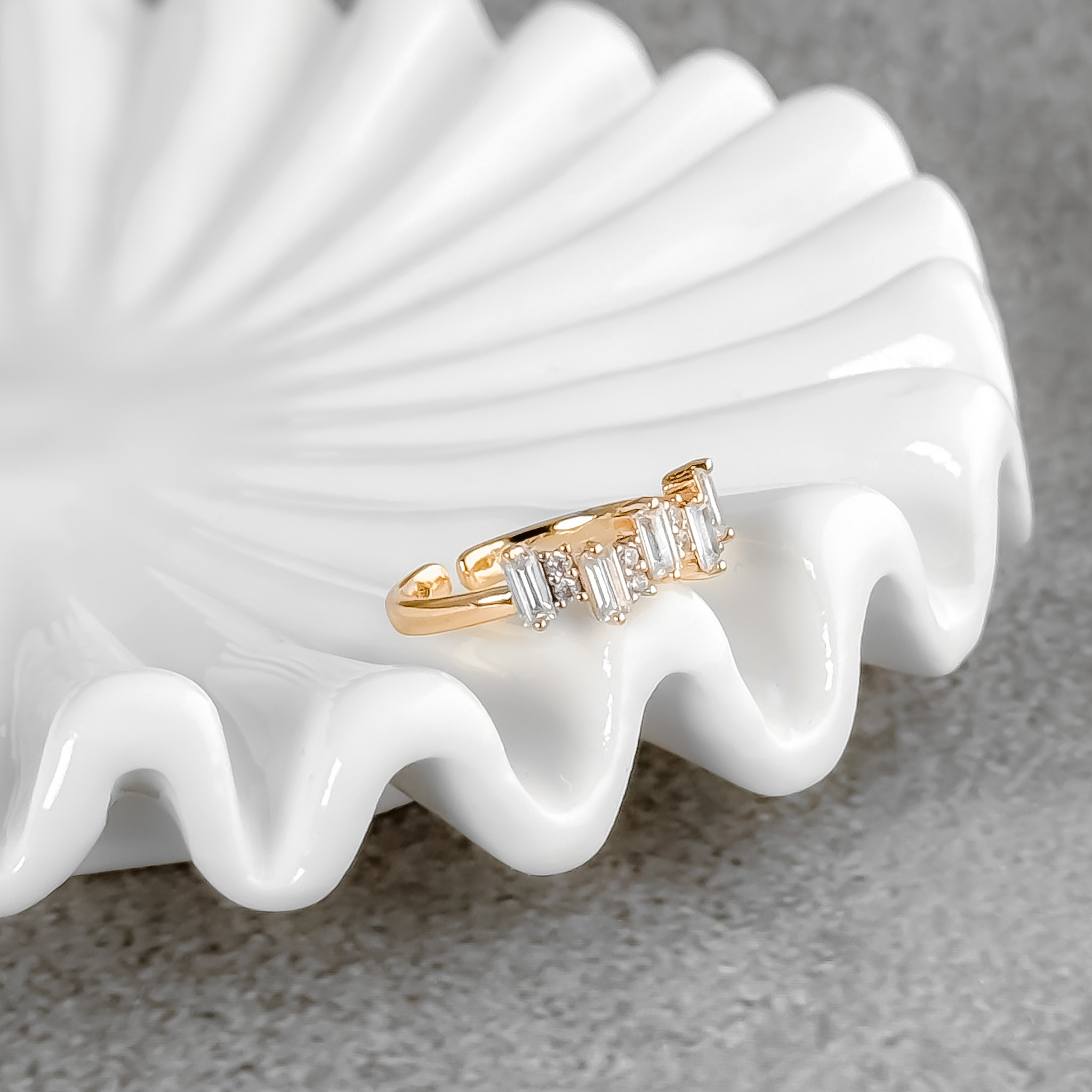 Minimalistyczny z nutą glamour. Pierścionek ten to idealny wybór, gdy chcesz dodać sobie elegancji bez przesady. Subtelne cyrkonie w geometrycznym układzie pięknie odbijają światło i pasują do każdej stylizacji 💫💍